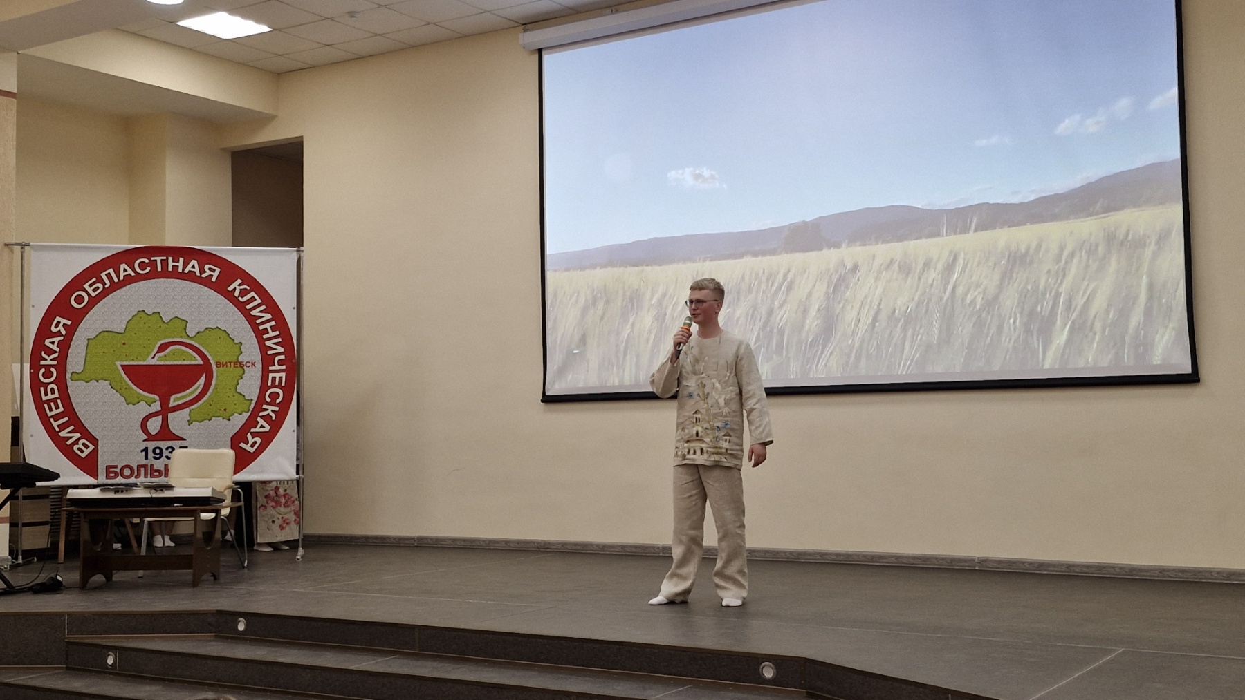 Яркими были и творческие номера оршанских врачей. В своих выступлениях Александра и Никита сделали акцент на малую Родину. Никита Лузгин вместе с победительницами районного конкурса чтецов, медработниками УЗ “ОЦП” Викторией Тотровой и Алиной Цургановой, читали стихотворение В.Короткевича “Бацькаушчына”. А Александра Репникова исполнила песню “Куточак Беларусi”.