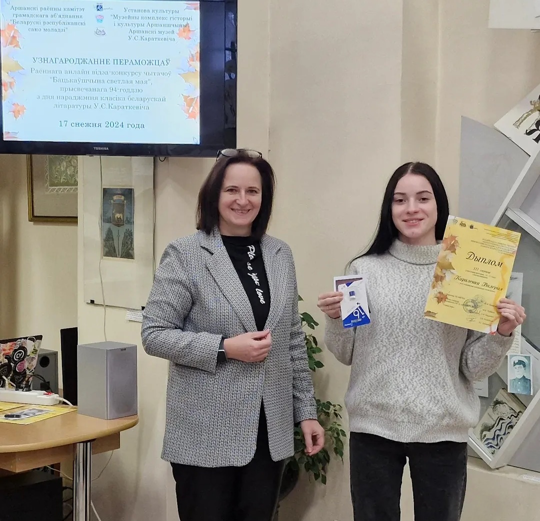 В Оршанском музее В.С.Короткевича наградили победителей районного онлайн видео-конкурса чтецов “Бацькаушчына светлая мая”, посвящённого 94-летию со дня рождения классика белорусской литературы В.С.Короткевича.