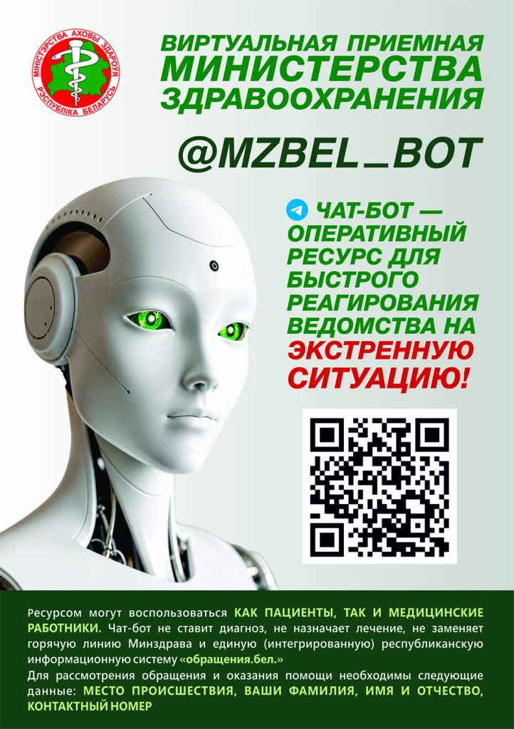 Обращаем Ваше внимание на то, что в целях повышения качества работы виртуальной приемной Министерства здравоохранения (чат-бот Минздрава) с 1 июня 2026 г. данный ресурс будет размещен по новому адресу: @mzbel_bot.