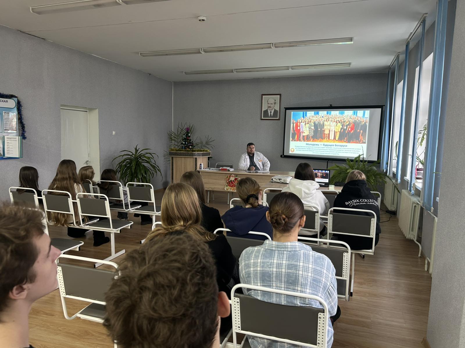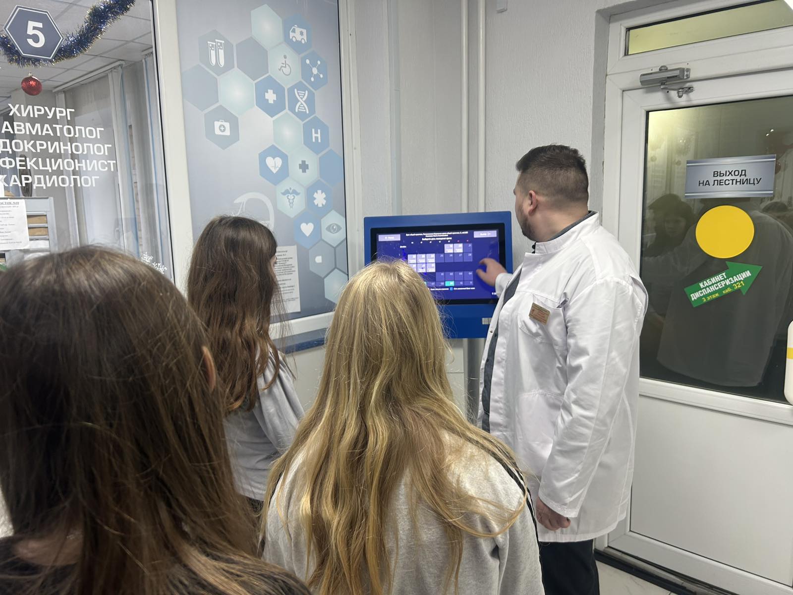 Заместитель заведующего поликлиникой Геннадий Дроздов провел для будущих медиков обзорную экскурсию по учреждению, ознакомил со структурой и режимом работы, рассказал о видах оказываемой медицинской помощи. В финале встречи поведал старшеклассникам об основных направлениях развития молодежной политики в Республике Беларусь.