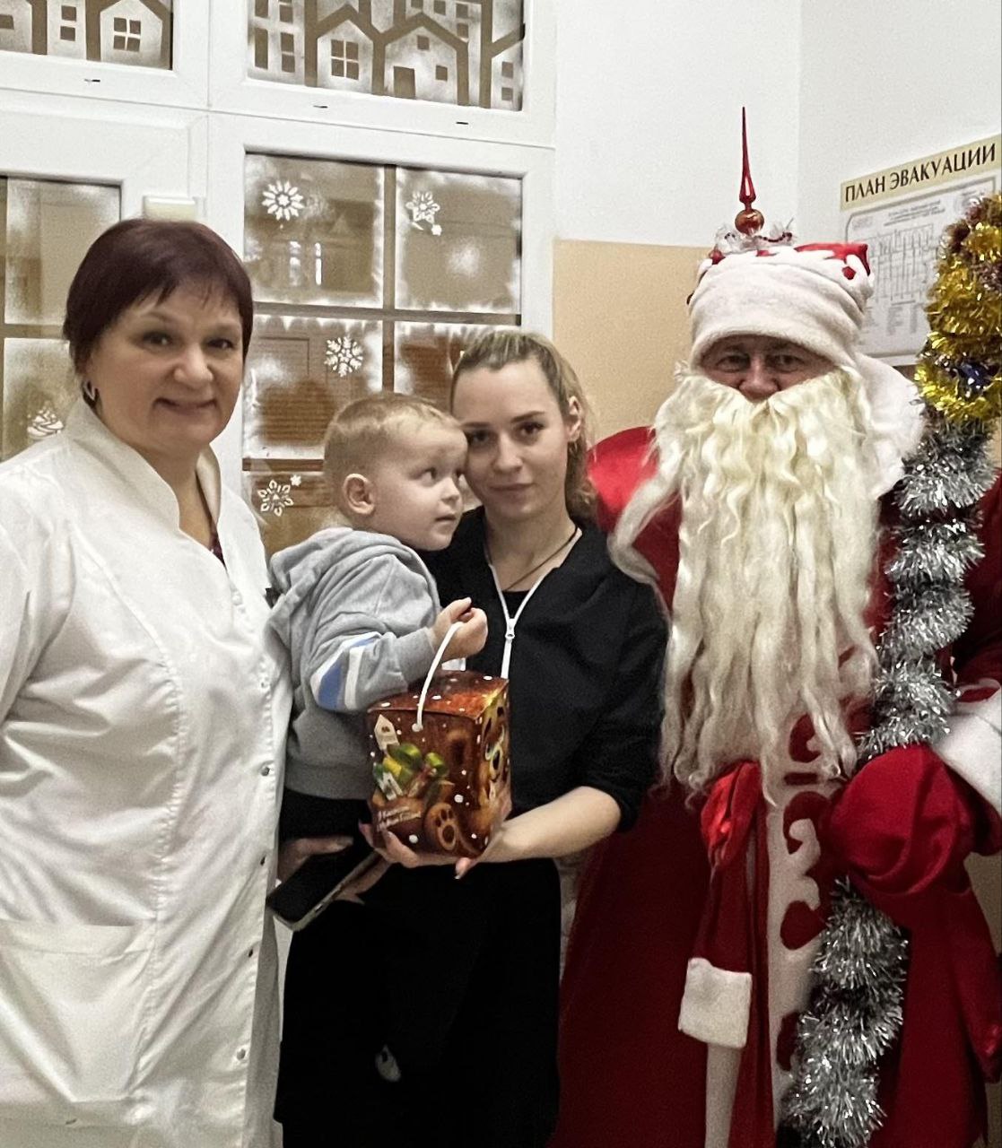 Коллектив педиатрического отделения городской больницы N1 имени Семашко во главе с заведующей Кудряшовой Тамарой Леонидовной и партийцы БЕЛОЙ РУСИ поздравляют всех ребят с Новым годом!