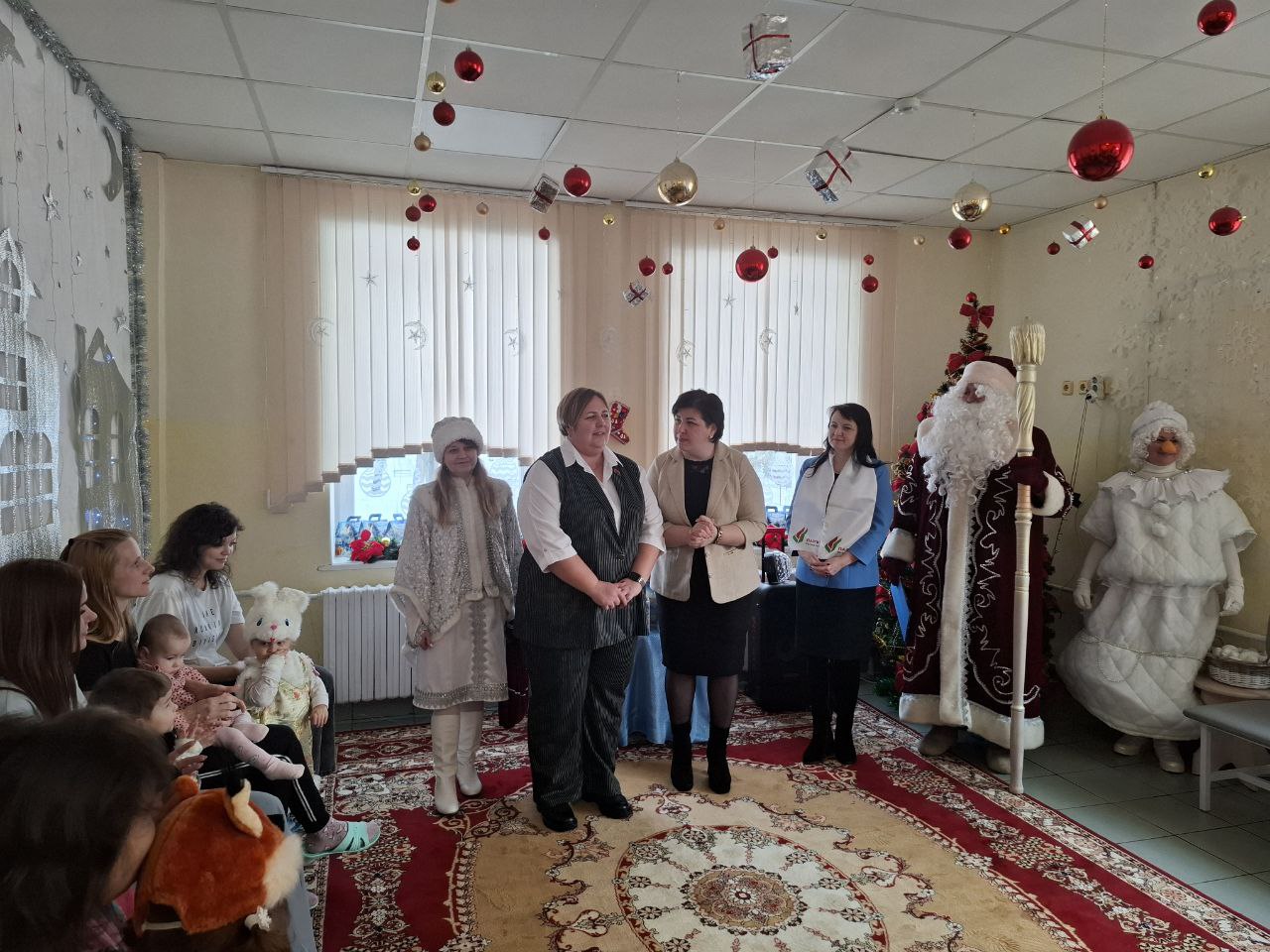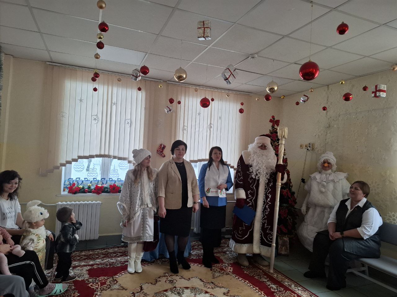Для ребят, которые в этот зимний день находятся в больнице праздник устроили Дед Мороз, Снегурочка снеговик из РЦК “Победа” отдела культуры Оршанского райисполкома, заместитель председателя Оршанского районного исполнительного комитета Прокофьева Анастасия Адамовна, председатель Оршанского отделения партии “Белая Русь” Янковская Татьяна Николаевна, заместитель главного врача Руммо Любовь Юрьевна.