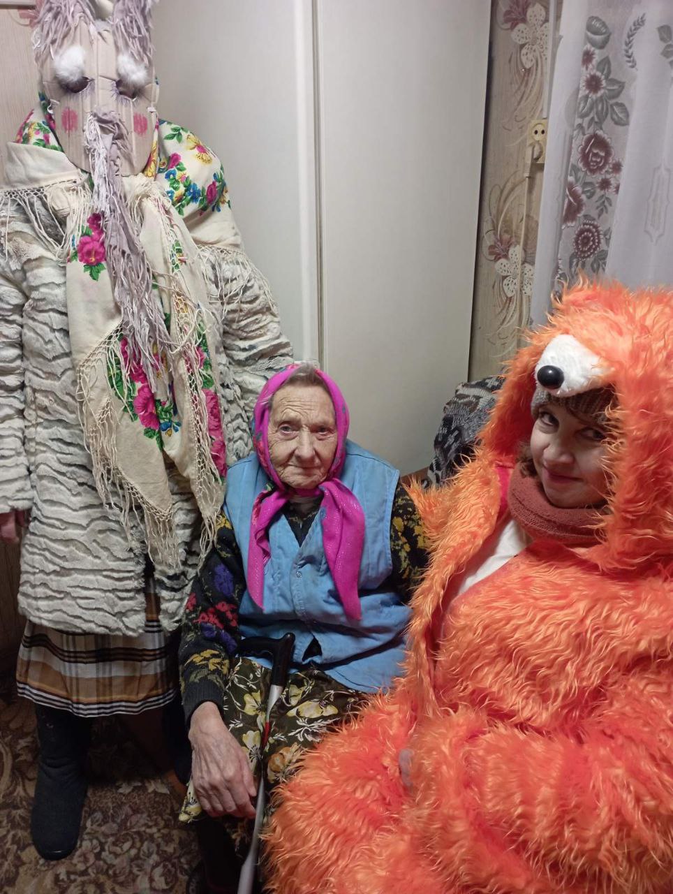 Заведующая Шибекским ФАПом Бахмат Антонина Кирилловна в день Старого Нового года организовала праздничный патронаж своих долгожительниц, которым 92 года.