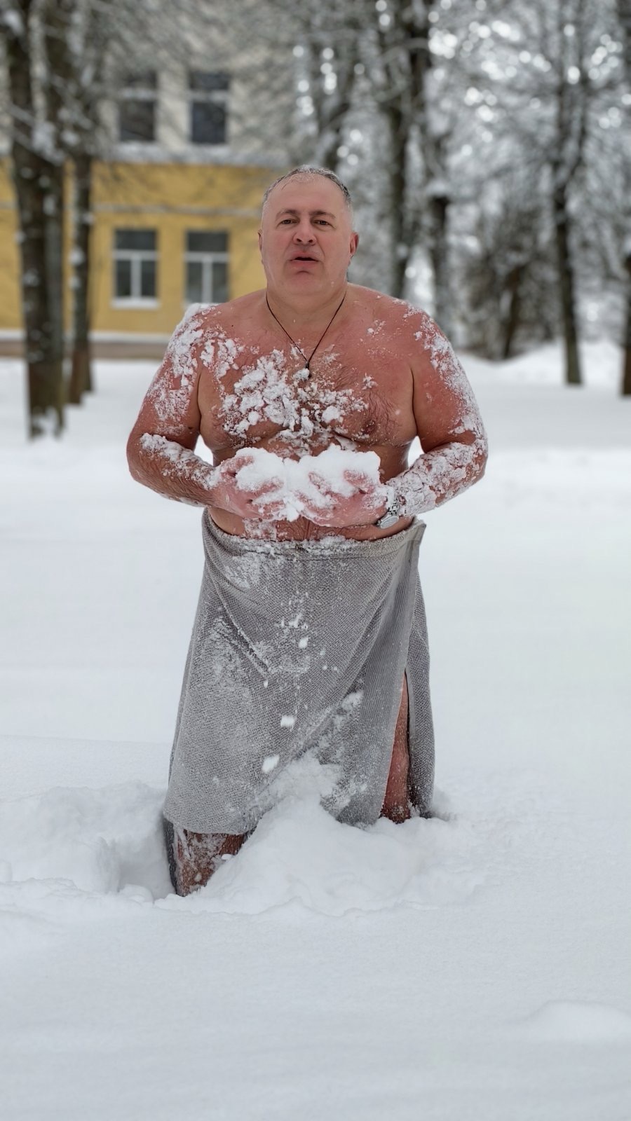 – А началось всё с бани. Выходил из парилки и обтирался снегом. Летом обливался холодной водой. Сейчас окунаюсь в проруби не только на Крещение, но и при каждом удобном случае в любую пору года.