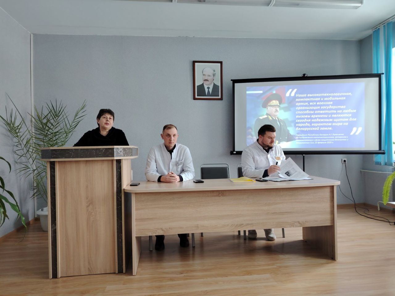 Накануне 23 февраля Дня защитника Отечества и Вооруженных сил Республики Беларусь члены информационно-пропагандистских групп Оршанского районного исполнительного комитета Руммо Л.Ю., Крачек И.Ю., Дроздов Г.А., Бабинчук Ю.В. провели встречи с коллективами «Оршанской центральной поликлиники в рамках единого дня информирования на тему «ОБОРОНИТЕЛЬНАЯ МОЩЬ БЕЛОРУССКОЙ АРМИИ И ПАТРИОТИЗМ В СОВРЕМЕННЫХ УСЛОВИЯХ»